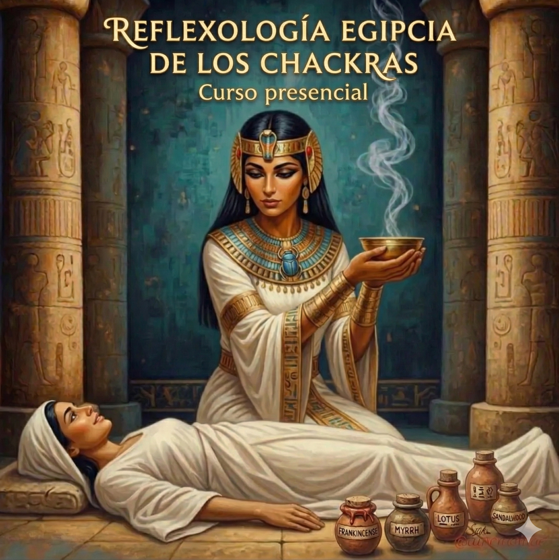 También aprenderemos el arte de los Aceites Esenciales Sagrados como hacían los Egipcios las Sacerdotisas Myrraphores para realizar masajes y sanaciones , realizando un aceite esencial especial para trabajar con las personas y con nosotros como herramienta para la Terapia. Y algunas cosas más , más abajo te dejo el enlace para descargarte el PDF informativo con más información detallada.